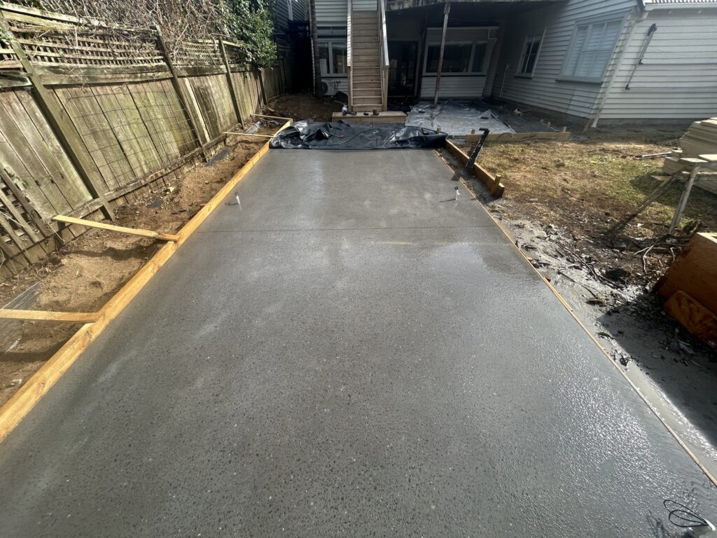 We recently completed a premium concrete patio pour in Mt Eden, Auckland, installing a black oxide exposed Longburn pebble finish. This type of decorative concrete patio delivers a high-end look, but achieving a long-lasting result relies heavily on correct preparation, reinforcement, and curing.
